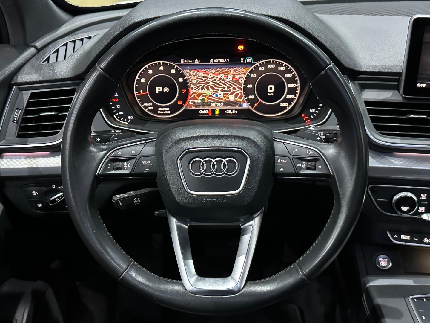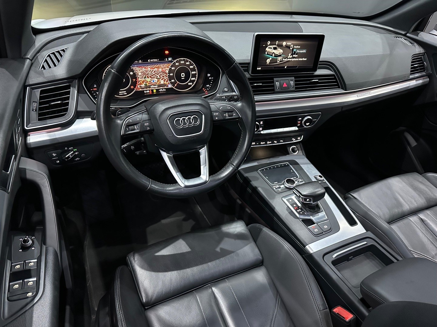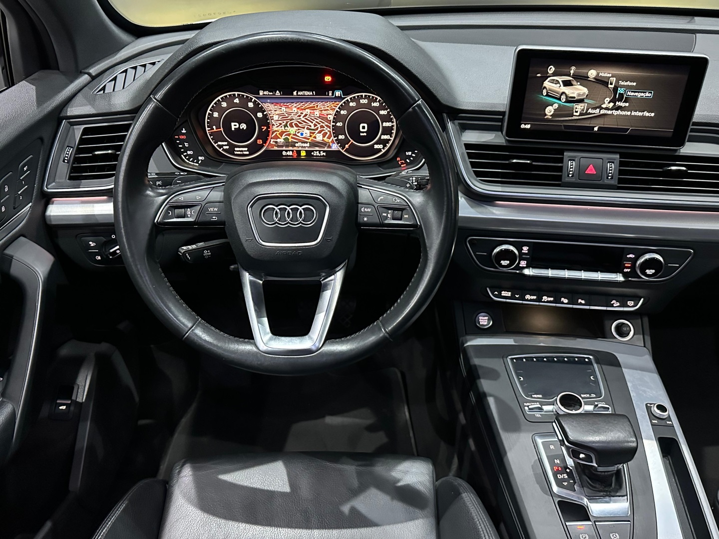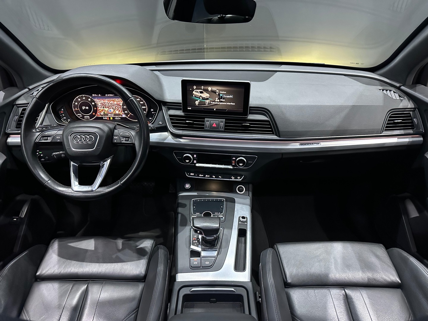 Blindado Nivel III-A cart com vidros AGP B33. SUV premium médio, equipado com motor TFSI turbo, câmbio automático S Tronic e tração integral Quattro. Versão Ambition. Teto solar panorâmico, bancos em couro, multimídia MMI com Android Auto/Apple CarPlay, Audi Virtual Cockpit, ar-condicionado digital, rodas de liga leve, sensores de estacionamento, câmera de ré. Loja certificada pelo Exército Brasileiro para comercialização de veículos blindados. Oferecemos excelente avaliação na troca, financiamento com ótimas taxas e possibilidade de entrada no cartão (consulte condições).